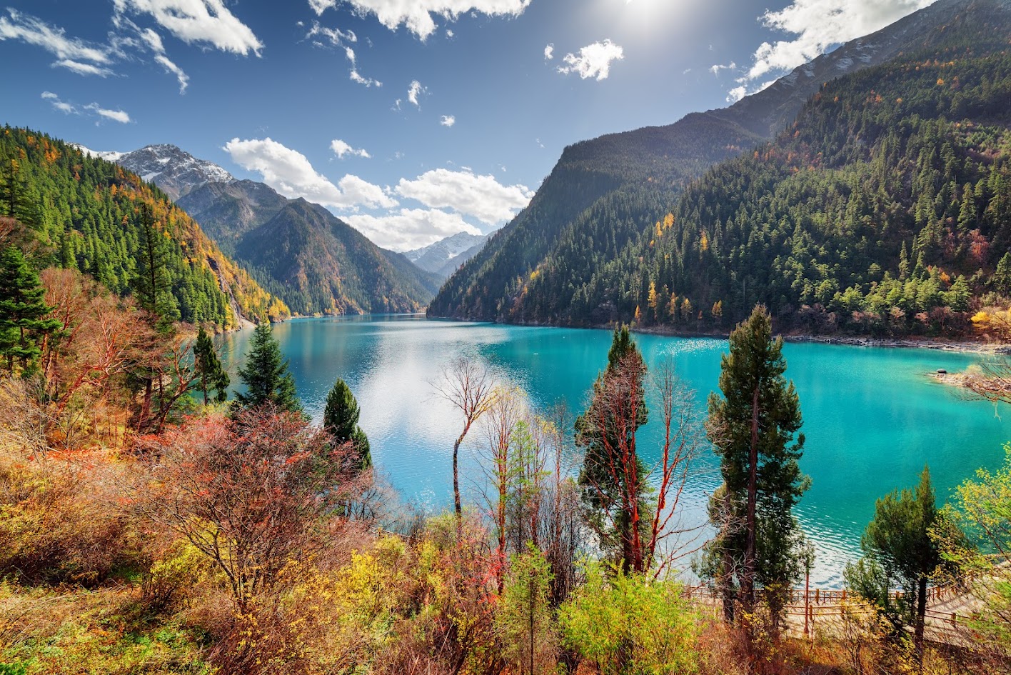 Jiuzhaigou is famous for its colorful lakes, majestic waterfalls, virgin forests, and diverse ecosystems. Particularly, the 108 lakes in Jiuzhaigou vary in colors like emerald green, sapphire blue, golden, and amethyst, creating a truly magical natural painting.