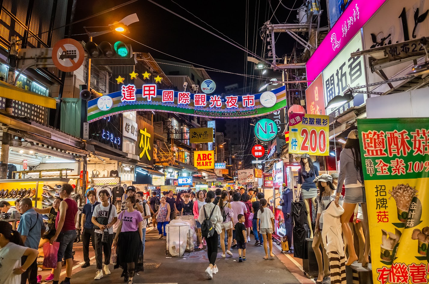 逢甲夜市距离台中机场约13公里,是台湾最大的夜市之一。你可以在这里找到从服装、化妆品、电子产品、纪念品到食物的一切。必尝美食包括臭豆腐、辣鸭头和珍珠奶茶。