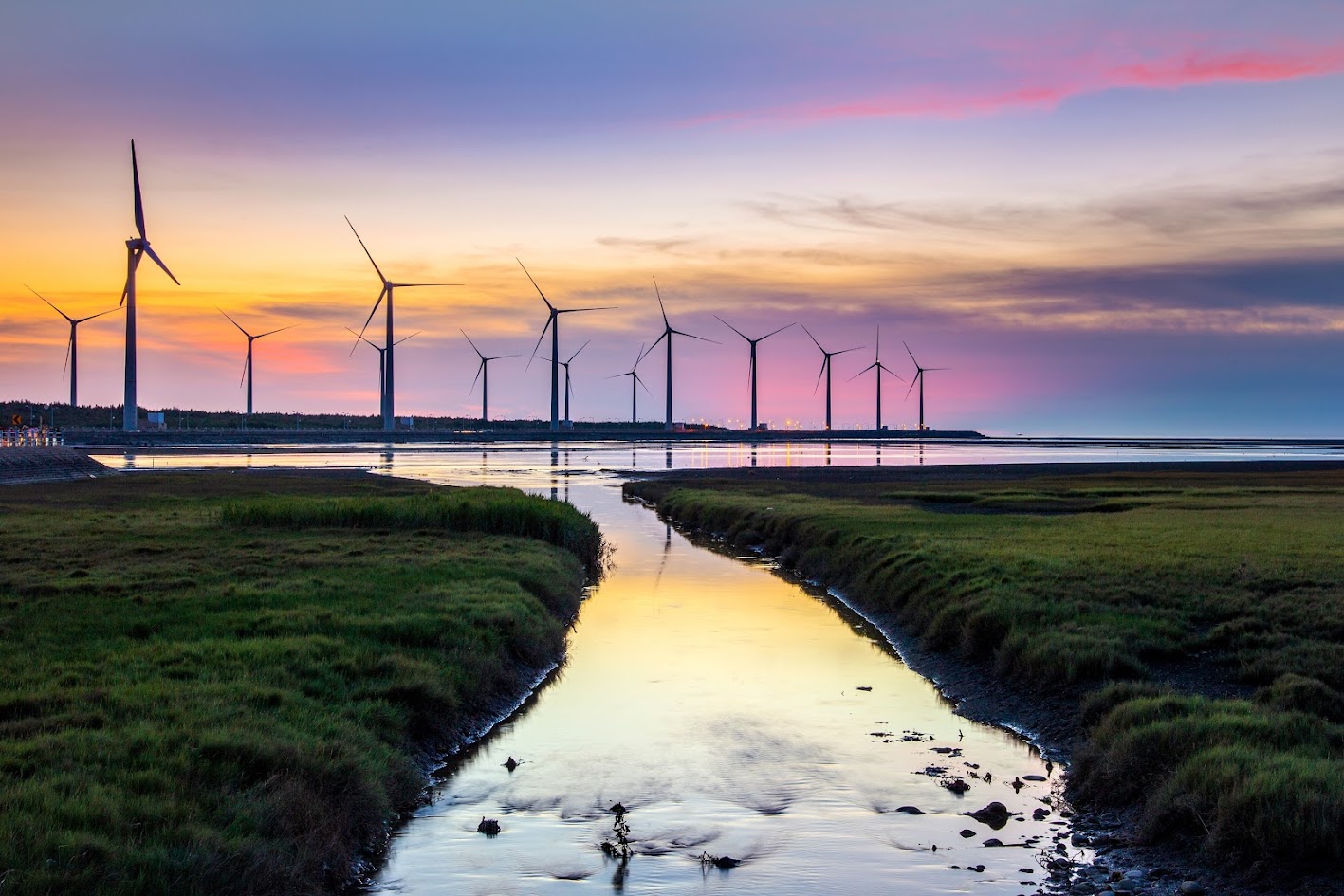 高美湿地位于台中机场以南11公里多的地方,是一个拥有丰富海洋生态系统的大型潮汐泥滩。它最著名的是美丽的日落景观和巨大的风力涡轮机。